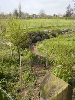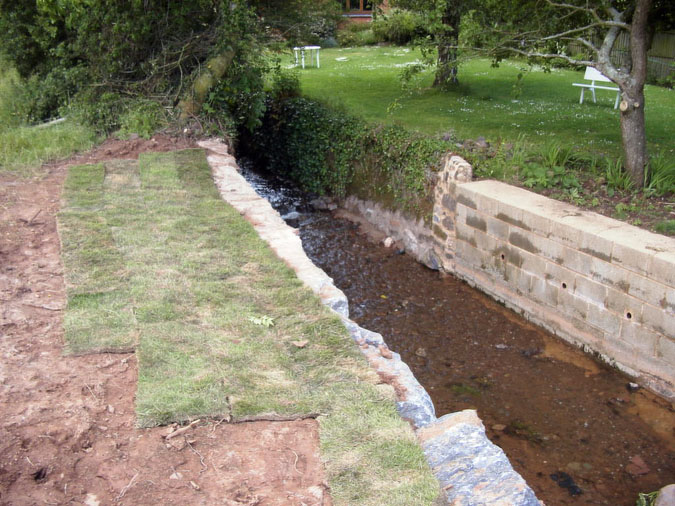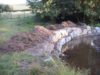 In order to confine the stream to TMGT boundaries and to provide protection from severe flooding, the stream was reinforced at various points with large boulders and retaining walls. Tree and shrub planting also helped stabilize the banks