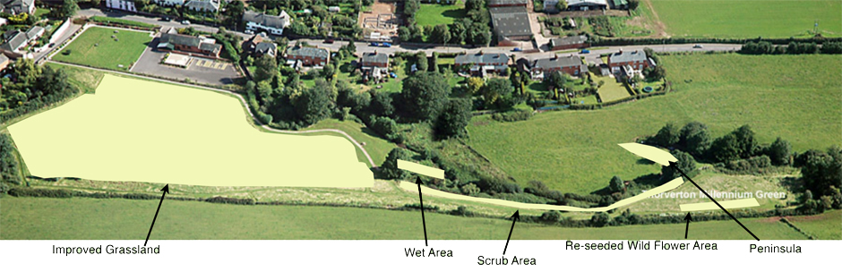 On 13th May 2015 two surveyors walked the Millennium Green and recorded the plant and grass species. The area was divided up into the main grassland area, wet area, scrub area, the peninsula and the re-seeded wild flower area. The hedges and boundaries have yet to be completed.